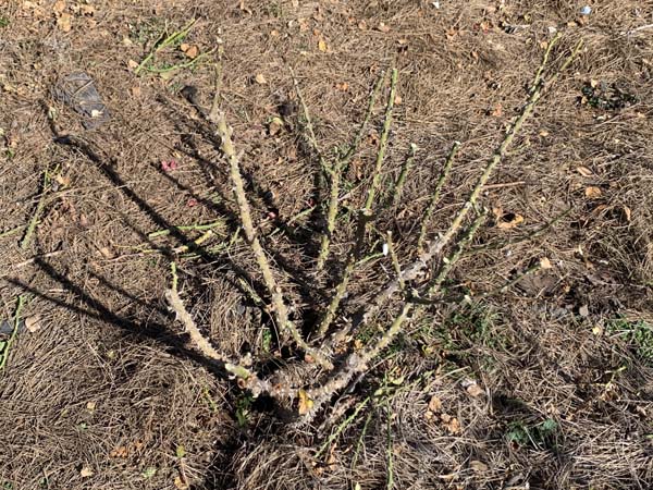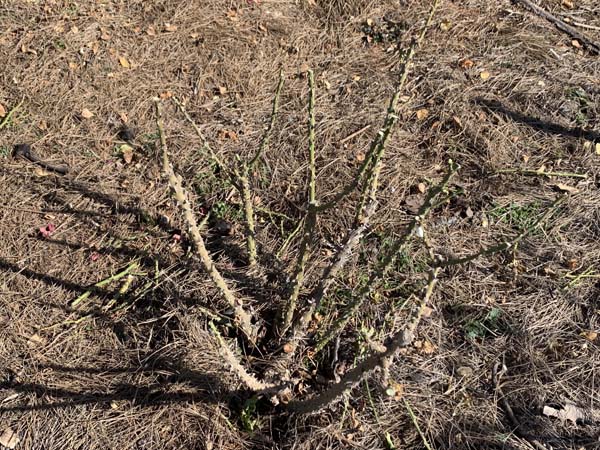 If you notice pernicious scale on the stems of your rose whilst pruning, specially on the older wood, you know that either the soil has compacted over time or the irrigation water is not draining properly due to clay soil.