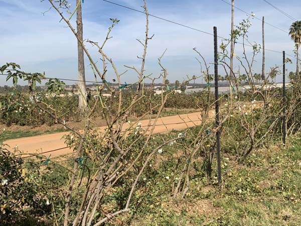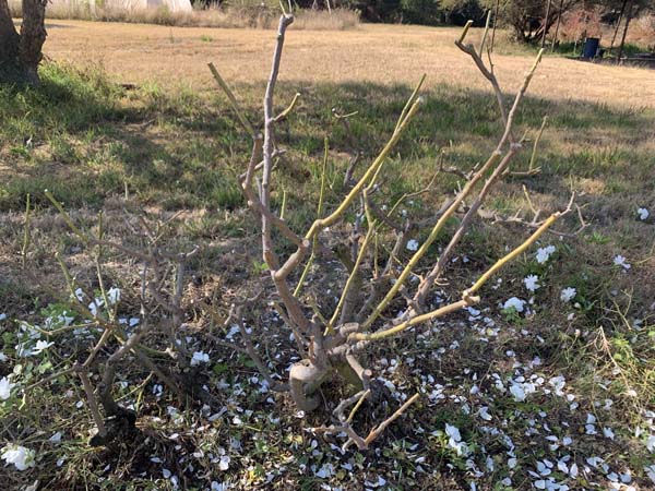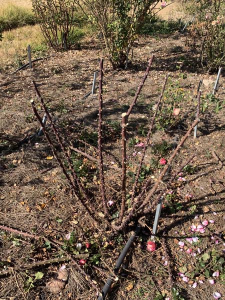 The climbers after their prune. Note the short stubs left on the trained canes.